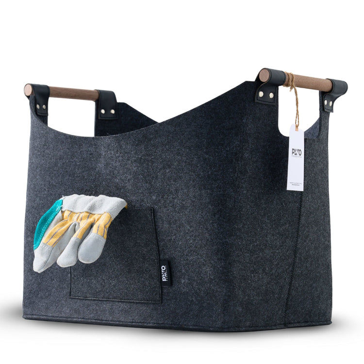 View allA living room quickly becomes cluttered with scattered blankets, toys, or loose items. The PyroProducts® Storage Basket immediately restores order and style. Made from sturdy and shape-retaining felt with a generous capacity of 60 liters, this luxury basket offers space for blankets, toys, magazines, laundry, and if desired, firewood. The wooden handles ensure comfortable and secure carrying, even with 20 to 30 kilograms of contents. The anthracite color and sleek design fit into any modern interior.